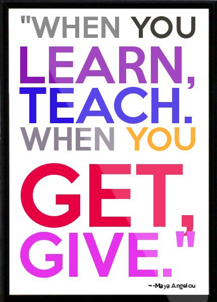 These are the kind of stories that get me excited about STEM and nudge at my heart, telling me to do something, do better, to get involved. This weekend I watched Maya Angelou’s Memorial Service this past Saturday – it was beautiful. One of her quotes that was mentioned several times reads: “When you learn, teach. When you get, give.” It’s time for ME to step up! AND to LIVE what I tweeted that very day: “Live The Legacy.“