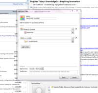 For #2 and #3, imagine the following series of steps/actions for one your staff to act on. His name is Fred. In that scenario you’d want to: 1) Flag the message as something linked to Fred, 2) Create a follow up item and set the due date to be this week, 3) Move the original email of your inbox and into the 0 – current month folder, 4) Forward the message to Fred. Using Quick Step, you can automate these 4 steps: that’s 4 things you can do with one click!