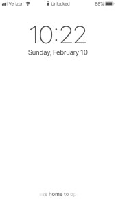 My main page is kept very simple and each app is intentionally placed with the things I want to encourage myself to do. Some are entertainment-related, most are not. You’ll notice a simple black background (makes it easier to identify apps) and NO directives. These are all applications I use on a daily basis so they warrant “home screen” placement. Please note, it’s not full…. this is intentional. Similarly, my lock screen is a simple white background. I can easily see the time and date which is usually what I need to see quickly (if I’m not wearing my Apple watch). Another screen I use often is widgets (swipe left). My chosen info is weather, calendar and activity.