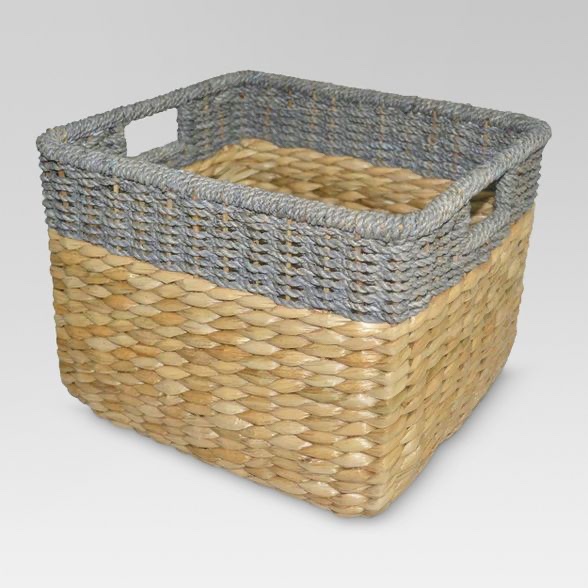 - Gray, wicker and black would be the color scheme. (I saw some great baskets with chrome handles but they just did not go well with my decor)
